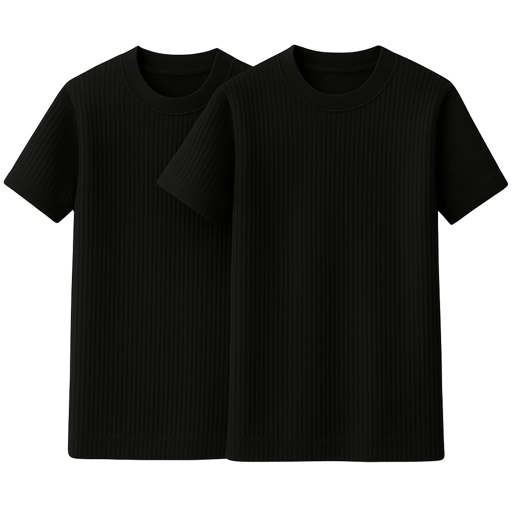 Adicione este pack com duas camisetas caneladas slim ao seu guarda-roupa e experimente o conforto e a elegância minimalista de peças modernas e versáteis.